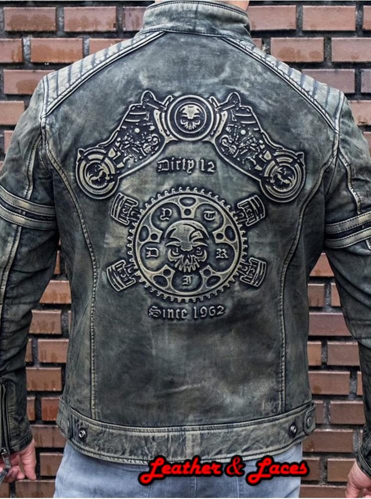 - geaca usoara, gri, de motor, din piele naturala stonewash premium de bovina (prelucrarea stonewash presupune o tehnica artizanala de tratarea a pieilor aniline cu ceara si uleiuri si frecarea acestora pe piatra, pentru obtinerea texturii catifelate, care pastreaza totodata toate detaliile specifice pieii respective);